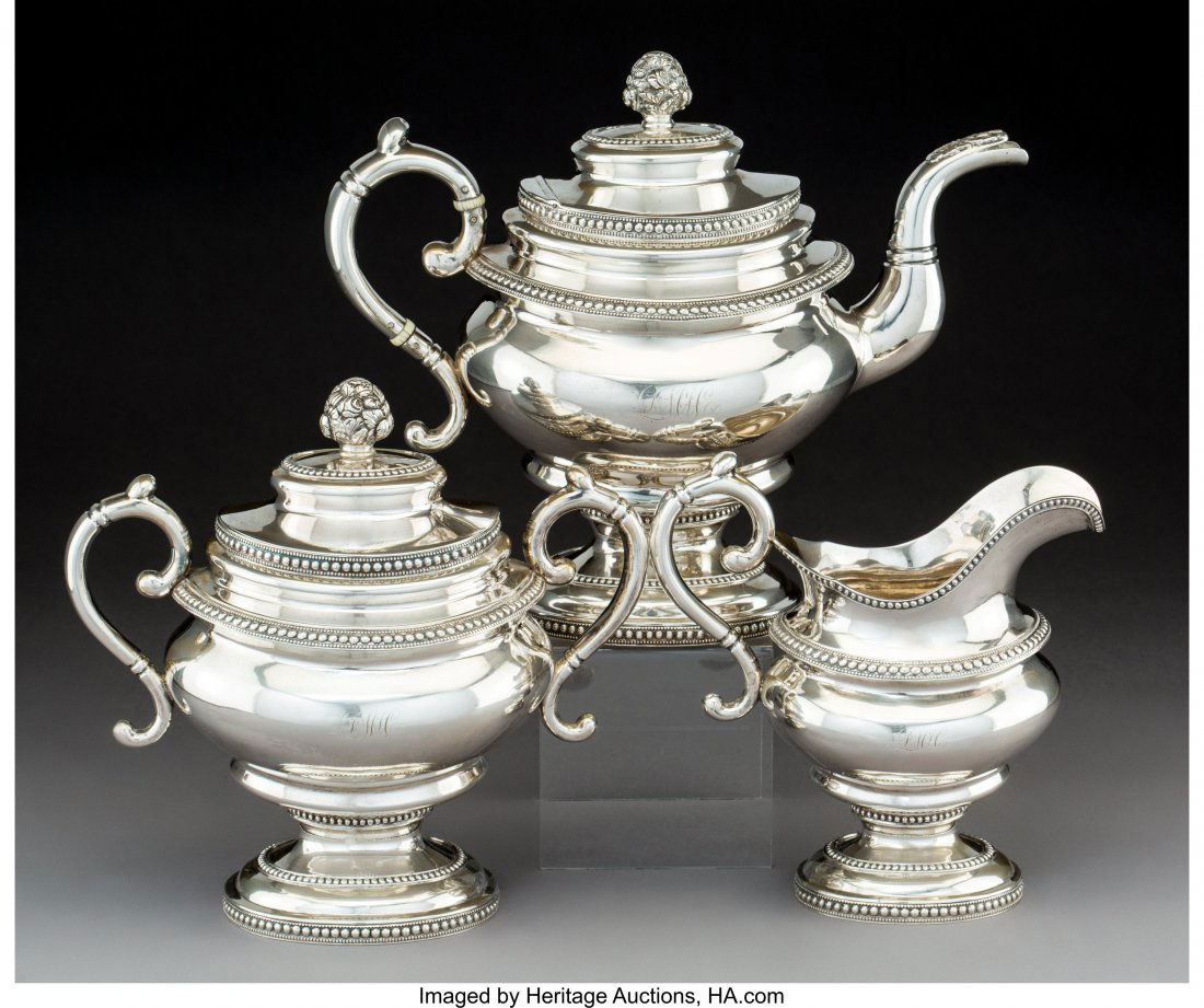 ENGLISH SILVER LUSTRE CERAMIC TEA AND COFFEE ARTICLES, LOT OF SIX4 days LeftA FOUR-PIECE SILVER 'BAMBOO' TEA AND COFFEE SERVICE, MARK OF ZEE WO, SHANGHAI, CIRCA 1870-1925Mar 11, 2026Gorham Sterling 5 Pc. Coffee and Tea SetMar 10, 2026Three silver articles3 days LeftGorham Plymouth Sterling Silver Coffee & Tea SetMar 19, 20263 pcs Vintage Rochester Silver Plated Tea Pots w/ Floral Details. Good Condition. See pics.4 Piece Silver Plate Tea Set4 days LeftE.G. WEBSTER & SON SILVER-PLATED FIVE-PIECE COFFEE AND TEA SERVICE4 days LeftPair Danish Silver Tea and Coffee PotsMar 21, 2026American Silver Four-Piece Tea and Coffee ServiceMar 14, 2026Garret Forbes American Coin Silver 4-Piece Tea Set5 days Left3 pcs Vintage Silver Plated Tea Pots, incl. 5th Ave Co., Meriden & Wilcox. Very Good Condition.3 pcs Antique Silver Plated Tea Pots, incl. Rogers & Bro, Pairpoint & Superior. Very Good Cond.Antique English Sterling Silver Tea & Coffee Set – Made for John Wanamaker, 2365g3 pcs Vintage Metal Tea Pots, incl. 1x Silvercraft Pewter & 1x Rochester Silver Plated. See pics.3 pcs Vintage Silver Plated Tea Pots, incl. F. P. Copper & Poole Silver Co. Very Good Condition.