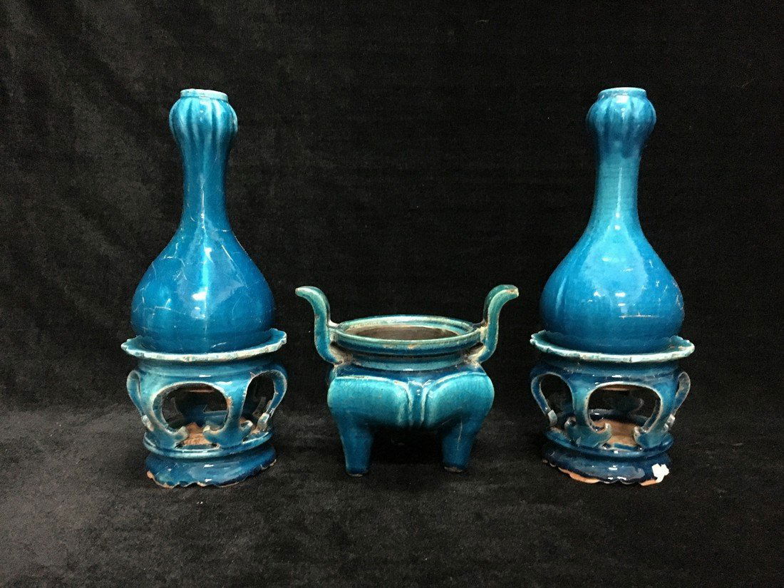 A THREE PIECES PEACOCK-GREEN DISPLAY