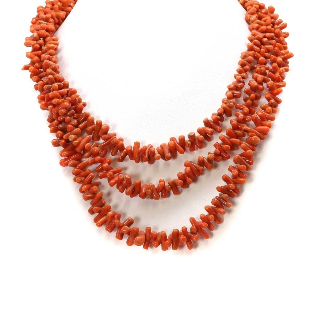 A three row branch coral necklace,