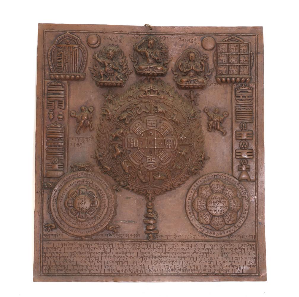 A Tibetan copper mandala plaque,