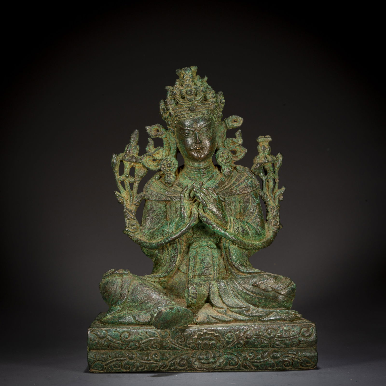 A BRONZE STATUE OF FOUR-ARMED AVALOKITESHVARA