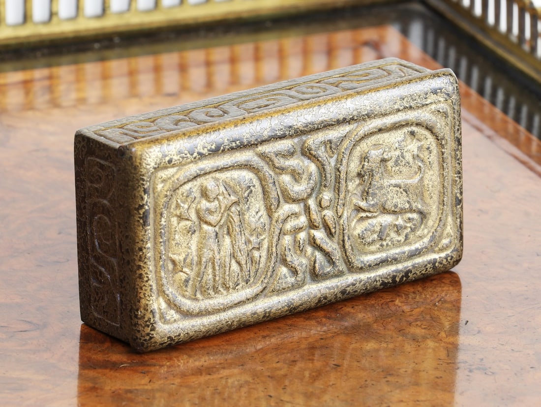 Tiffany Studios Gilt Bronze Zodiac Stamp Box Circa 1900-19202 days LeftAntique Tiffany Studios Gilt Bronze Zodiac Letter Holder Art Nouveau4 days LeftAntique Tiffany Studios Gilt Bronze Zodiac Letter Holder Art Nouveau1 day LeftTiffany Studios Bronze Zodiac Letter HolderMar 07, 2026Tiffany Studios Chinese Bronze Box7 hrs LeftTiffany Studios Bronze Letter HolderMar 10, 2026Tiffany Studios Grapevine Pattern Bronze and Slag Glass InkwellMar 07, 2026An Exquisite Gilt Bronze Figure Pattern Cover BoxMar 21, 2026TIFFANY STUDIOS "Zodiac" Bronze InkwellMar 07, 2026Vintage Brass Lion Motif Trinket Jewelry Box Gold Toned Mini Stash CaseJul 05, 2025Tiffany Studios Zodiac Bronze Ink Well with Gold Dore Finish6 hrs LeftTiffany Studios Zodiac Bronze Ink Well with Gold Dore FinishMar 06, 2026Tiffany Studios Pair of Bronze Zodiac Blotter EndsMar 11, 2026Tiffany Studios New York Art Deco Bronze Dore Notepad Holder 10806 days LeftTIFFANY STUDIOS "AMERICAN INDIAN" PATTERN DESK SET BRONZE, BLOTTER, INK POT, PEN TRAY, LETTER HOLDERMar 15, 2026A Qing Dynasty copper-gilt inlaid jade-carved poetry cover boxMar 21, 2026