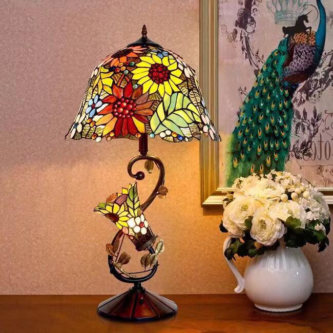 A TIFFANY TABLE LAMP WITH SUNFLOWER DESIGN