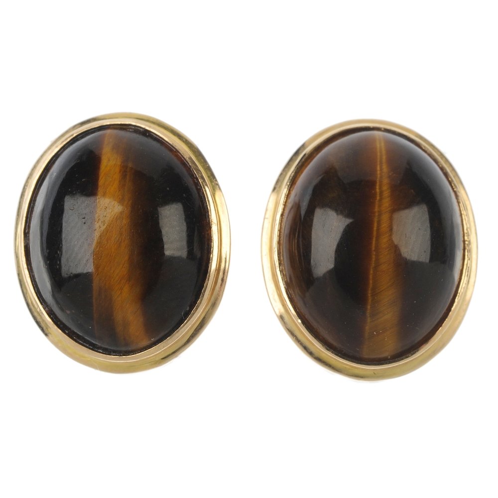 14K GOLD & TIGERS EYE CLIP EARRINGS