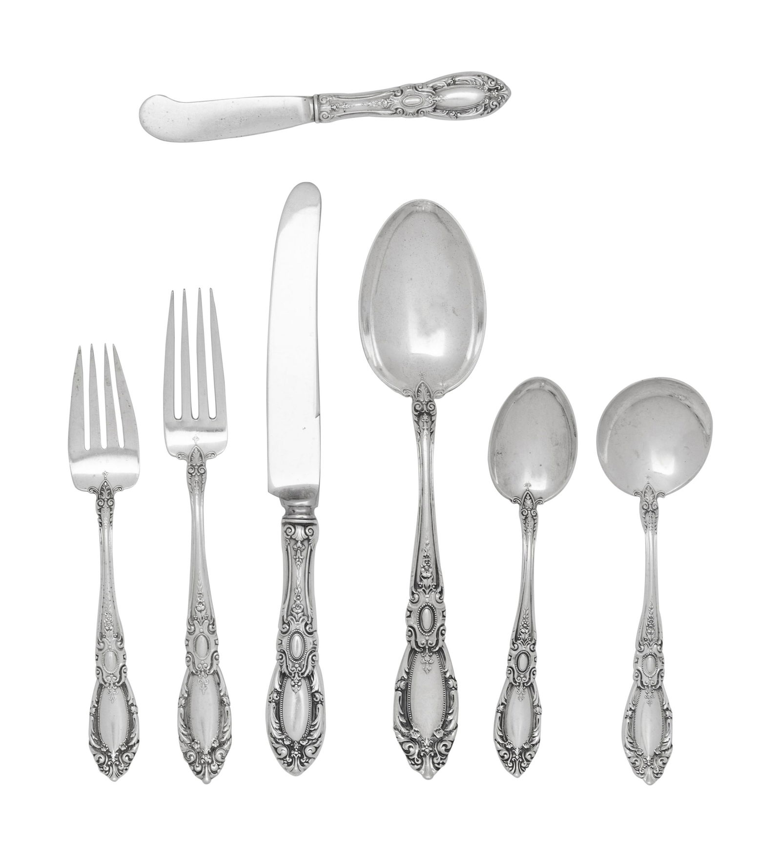 FRANCIS HIGGINS STERLING SILVER UTENSILS LOT OF 6Mar 08, 2026TOWLE "OLD LACE" STERLING SILVER FLATWARE, LOT OF 11Mar 04, 2026ENGLISH STERLING SILVER PLACE FORKS AND KNIVES, LOT OF 12Mar 04, 2026Towle King Richard Sterling Flatware4 days LeftA Lunt sterling silver Eloquence flatware service, mid 20th century4 days LeftS Kirk & Son Sterling "Repousse" Flatware Service5 days LeftLarge Group of Stieff Sterling "Rose" Flatware5 days Left(78) PIECE REED & BARTON STERLING FLATWARE SERVICEMar 05, 2026International Sterling "Angelique" Flatware Service5 days LeftKirk & Son Shell Sterling Flatware, 102 pieces5 days Left(72) PIECE GORHAM STERLING FLATWARE SERVICEMar 05, 2026(94) PIECE GORHAM STERLING FLATWARE SERVICEMar 05, 2026(82) PIECE REED & BARTON STERLING FLATWARE SERVICEMar 05, 2026Gorham Sterling "Buckingham" Flatware Service5 days LeftStieff Sterling "Rose" Partial Flatware Service5 days Left61 pc WALLACE CARMEL PATTERN SILVER FLATWARE,1530g4 days Left