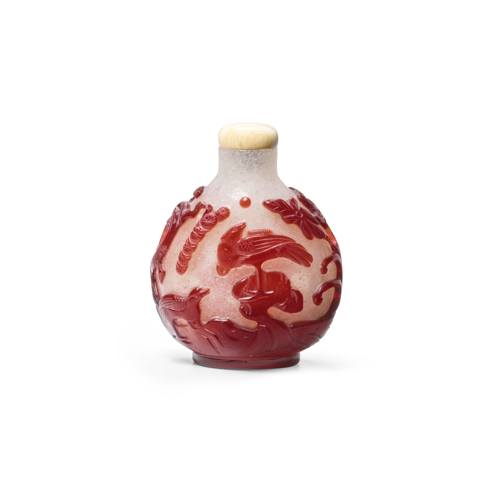 Modern Ruby Red Art Glass Decanter4 days LeftHand Made Italian Iridescent Red Glass Perfume Bottle with Shimmering Gold Flecks and Black GlassMar 08, 2026Art Glass Vase with Pink and White Swirled Decoration3 days LeftA Chinese 'Realgar Dragon' glass snuff bottle, probably from the imperial Beijing glass workshop,Mar 18, 2026A Chinese Glass Inside-Painted Snuff Bottle, 20th Century, 91FG2 days LeftVINTAGE HAND CUT CRYSTAL RUBY RED DECANTER4 days LeftRed and White Venetian Glass Barber BottleMar 28, 2026A Chinese Glass Inside-Painted Snuff Bottle, 20th Century, 43FG2 days LeftChinese Ox Blood Gourd Shaped Snuff Bottle3 days LeftCarmine Glazed Olive Bottle6 days LeftA Chinese 'Fired Up' glass snuff bottle, probably from the imperial Beijing glass workshop,Mar 18, 2026An Exquisite Ruby Red-Glazed Lotus,Bats and Peach Pattern Gourd-Shaped VaseMar 11, 2026A Precious Glass 'Figure' Snuff BottleMar 18, 2026A Large Red Art Glass Vase with Applied Floral Garland Decoration1 day LeftAn Exquisite Glass Landscape and Figure Pattern with poem Snuff BottleMar 13, 2026Ruby Cut-to-Clear Crystal Vase with Starburst Etching1 day Left
