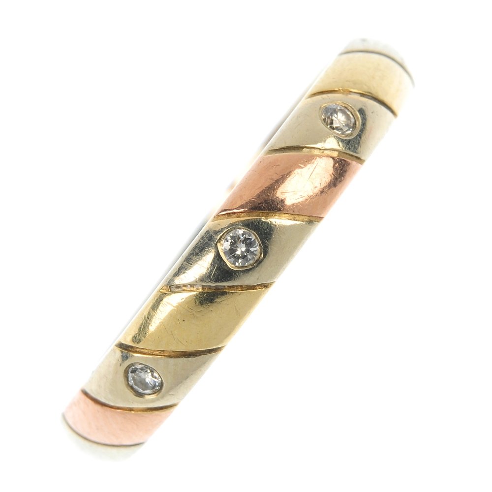 A tri-colour diamond band ring.