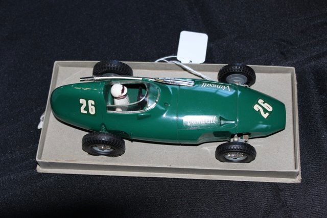 SoldTriang Vanwall Grand Prix Ferrari pedal carTriang Vanwall Grand Prix Ferrari pedal car, c. 1960s, F1 Ferrari Tipo 500, painted steel with rubberized tires, no. 26, approx. 48"l x 20"w Provenance: A Private Collection: The Sherry Netherland HotSee Sold Price