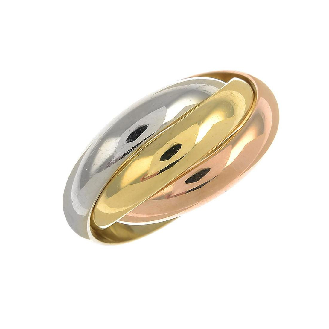 A 'Trinity' ring, by Cartier. Stamped 750. Ring size J.