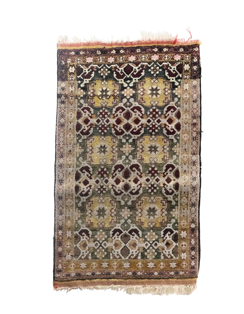 Antique Turkish Ghiordes Rug 34 x 53 Hand-Knotted Wool