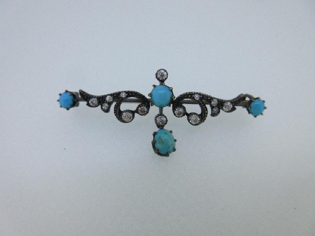 Antique Edwardian Diamond Turquoise Enamel Brooch Pin 20K Yellow Gold, 5.19 GramChairish Auctions4.5(10.3k)$600