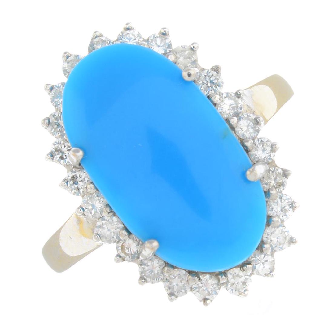A turquoise and diamond cluster ring. Each designed as