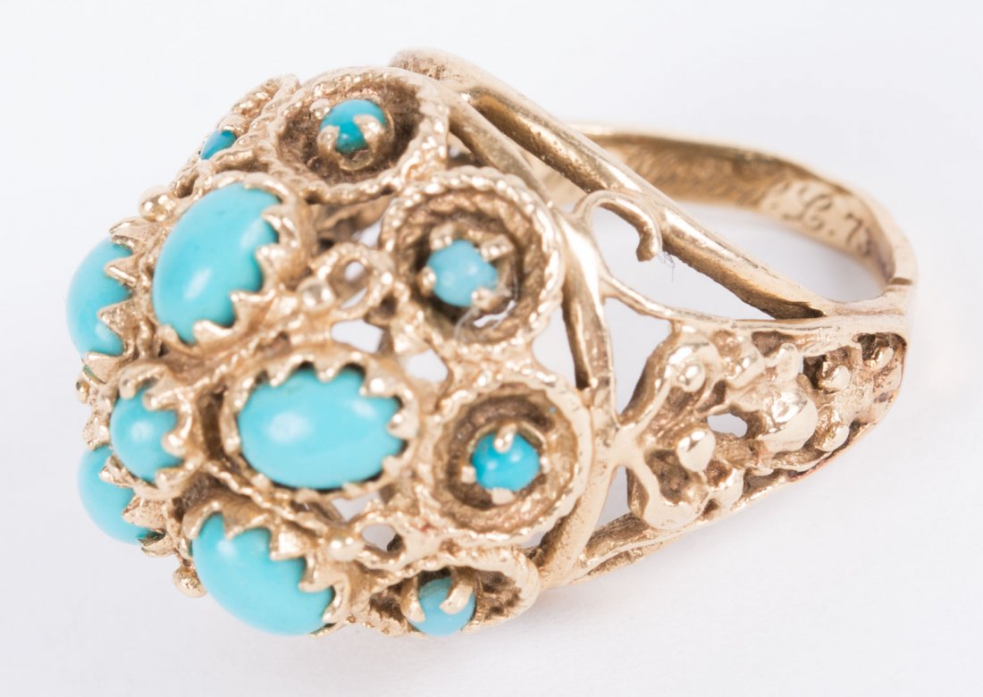 A 14K Gold and Composite Turquoise Ring