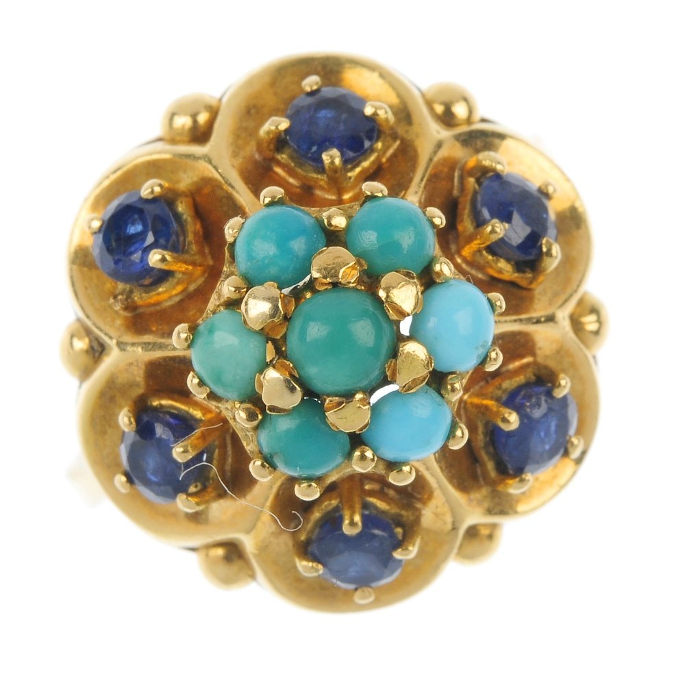 A turquoise and sapphire cluster ring.