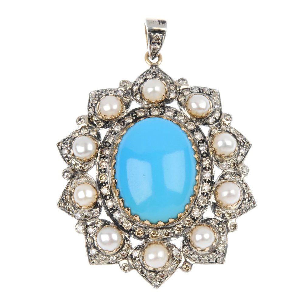 14K White Gold 8.81ct Turquoise 2.57ct Sapphire 1.59ct Diamond PendantRiverside Galleries4.4(200)$502 days Left