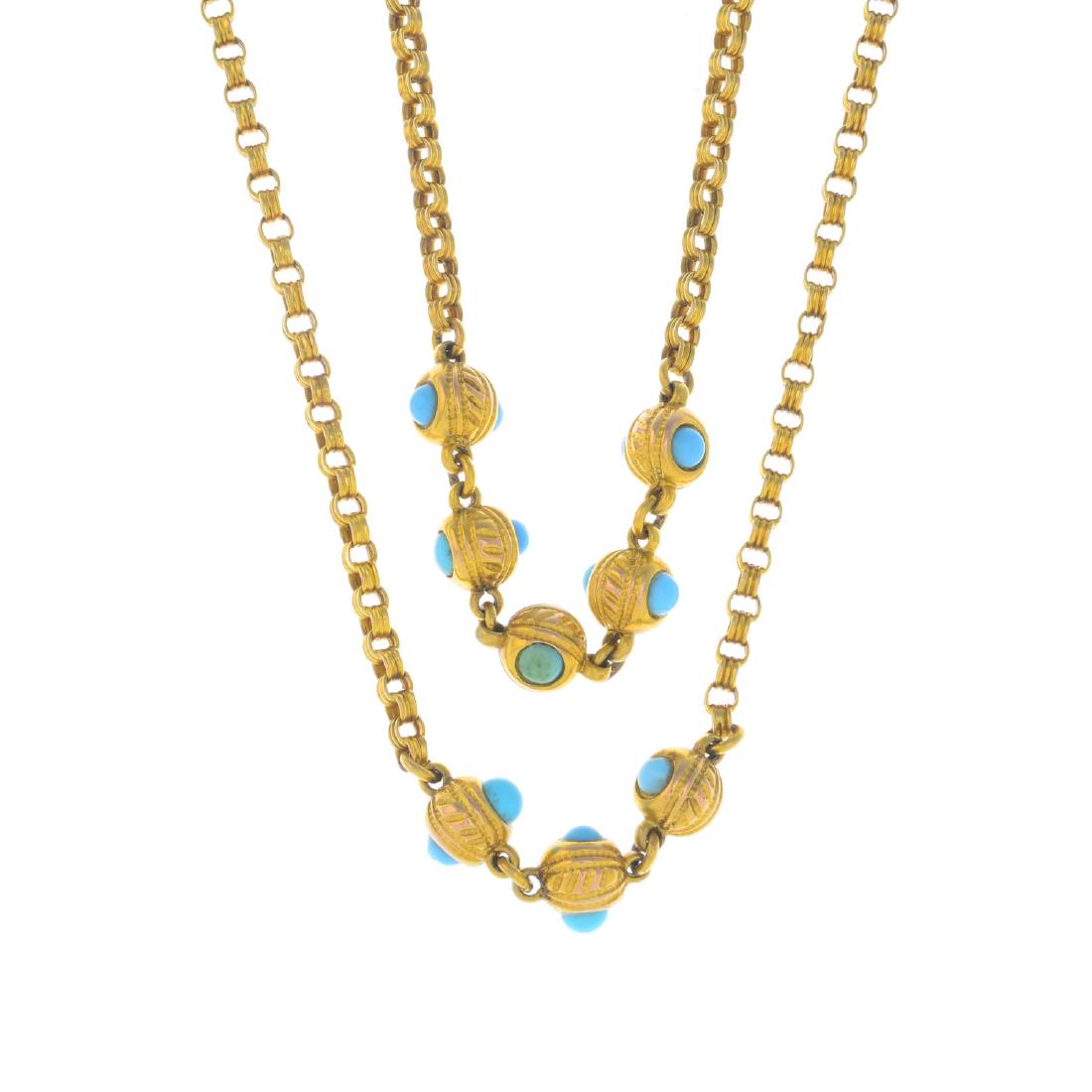A turquoise two-row necklace. Designed as circular