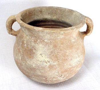 A two-handled terracotta jar with round