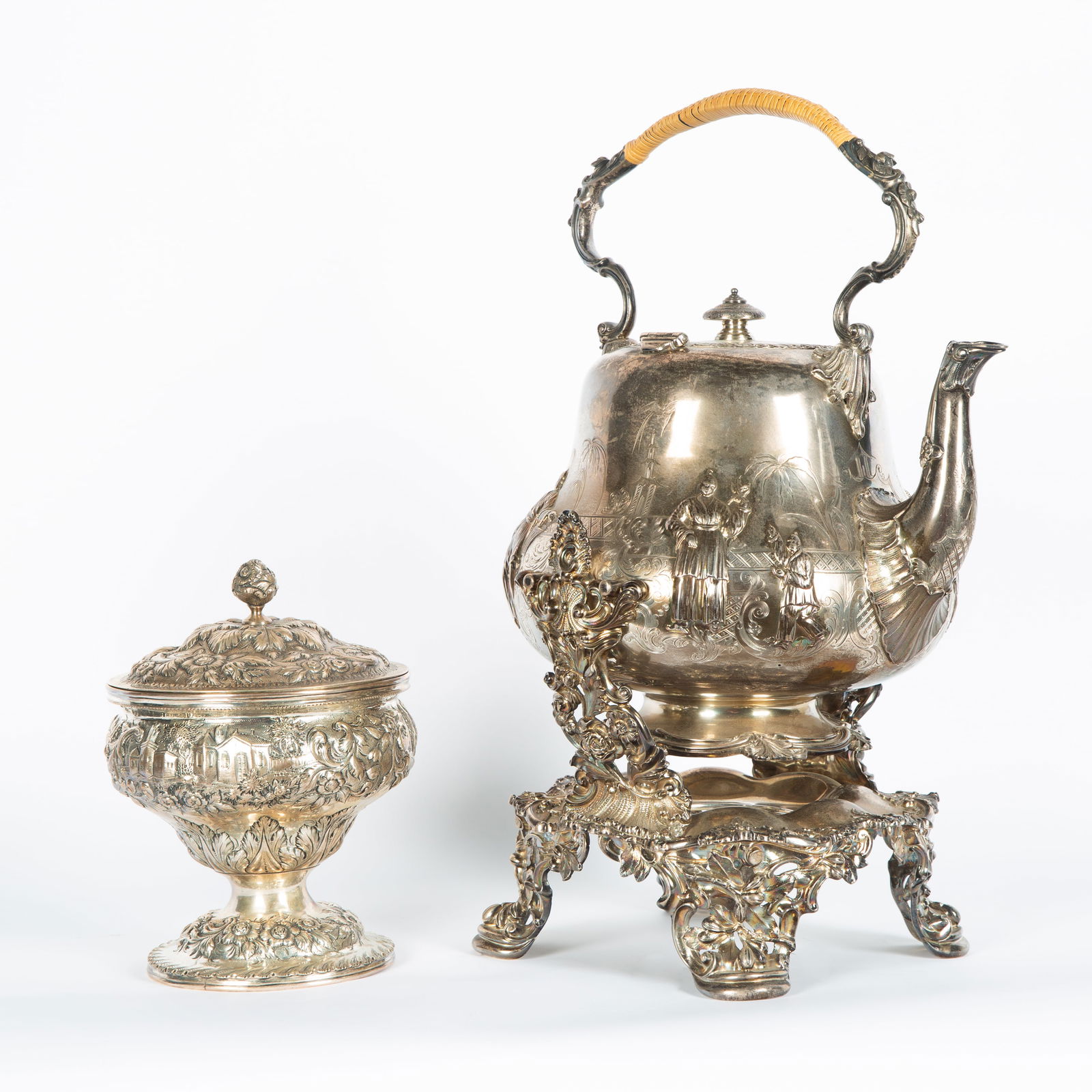 William Hunter 1842 Sterling Teapot Set of ThreeFeb 28, 20261873 Edward & Son Glasgow Solid Silver Tea/Coffee SetGarret Forbes American Coin Silver 4-Piece Tea Set6 days Left3 pcs Vintage Silver Plate Tea Pots, incl. 2x Silver on Copper Pieces. Very Good Condition.800 silver teapot and sugar bowlFeb 26, 2026Three silver articlesMar 03, 2026A Four-piece Silver Tea and Coffee Service, possibly Peruvian3 days Left3 pcs Vintage Silver Plated Tea Pots, incl. 1x Brooklyn & 1x Aurora? Co. Very Good Condition.SILVERPLATE TEA AND COFFEE SERVICE4 days LeftFrank W. Smith "Georgian" sterling tea service.6 days Left3 pcs Vintage Silver Plated Tea Pots, incl. 1x W.W.H. & Co. & 1x Homan. Very Good Condition.Gorham Sterling Repousse Hot Water Kettle on StandFeb 26, 2026Barbour Silver Co. Sterling Silver Borders Tea SetFeb 28, 20263 pcs Vintage Silver Plated Teapots, incl. Homan, Essay & Colonial Co. Good Condition.American Silverplate Hot Water Urn & BowlMar 07, 2026An English Garrard & Co, London Sterling Tea and Coffee Service2 days Left
