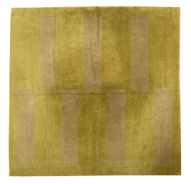 SoldAn Edward Fields modern area rug2001 Signed, dated, and numbered: Edward Fields / 10-2001 / 17193 The rectangular wool rug with black border centering a two-tone green rectangle bisected by a red and pink free-form band and scatteSee Sold Price
