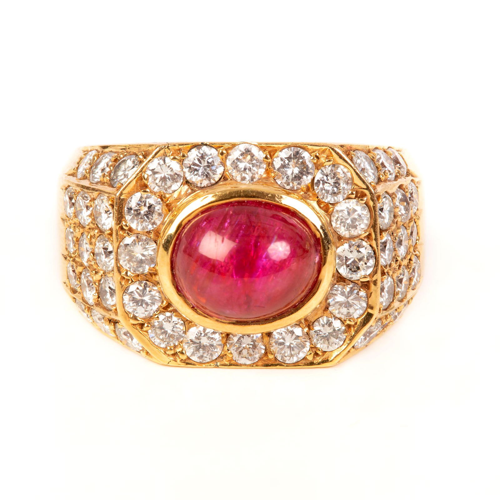 18K Yellow Gold Ruby 1.50 Ct and 82 Diamonds Ring