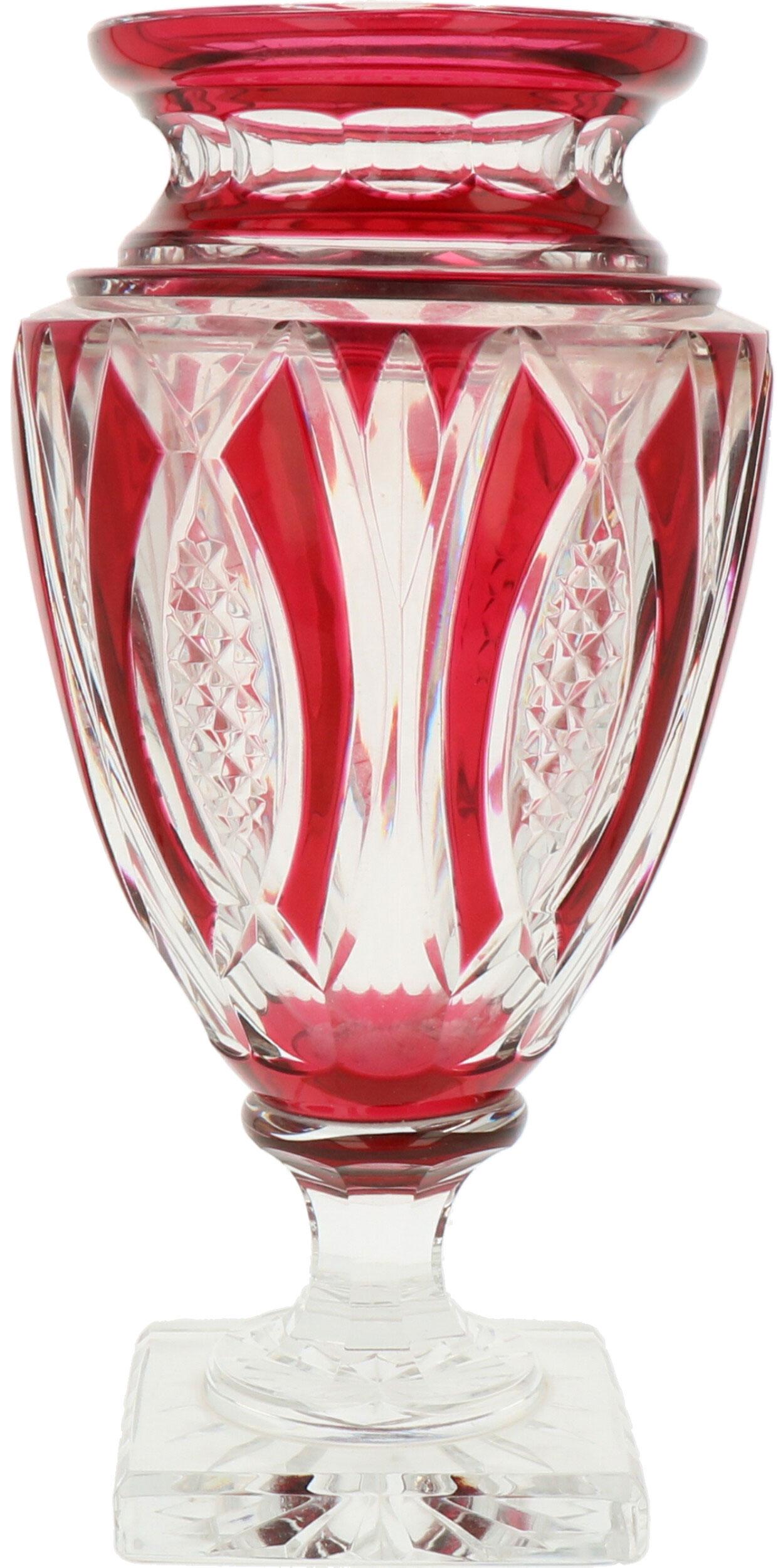 A Val-Saint-Lambert red cut crystal baluster vase.