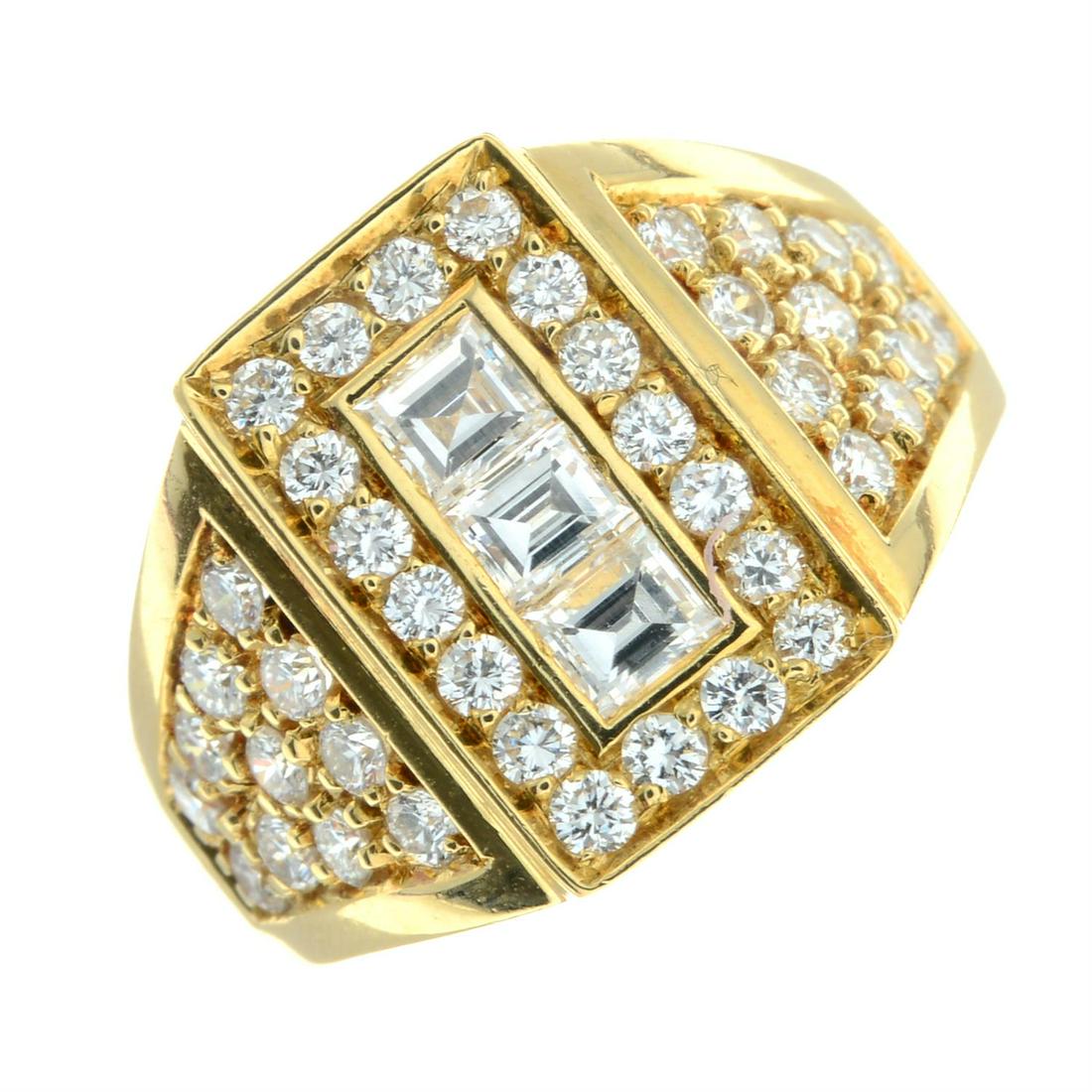 A vari-cut diamond cluster signet ring.