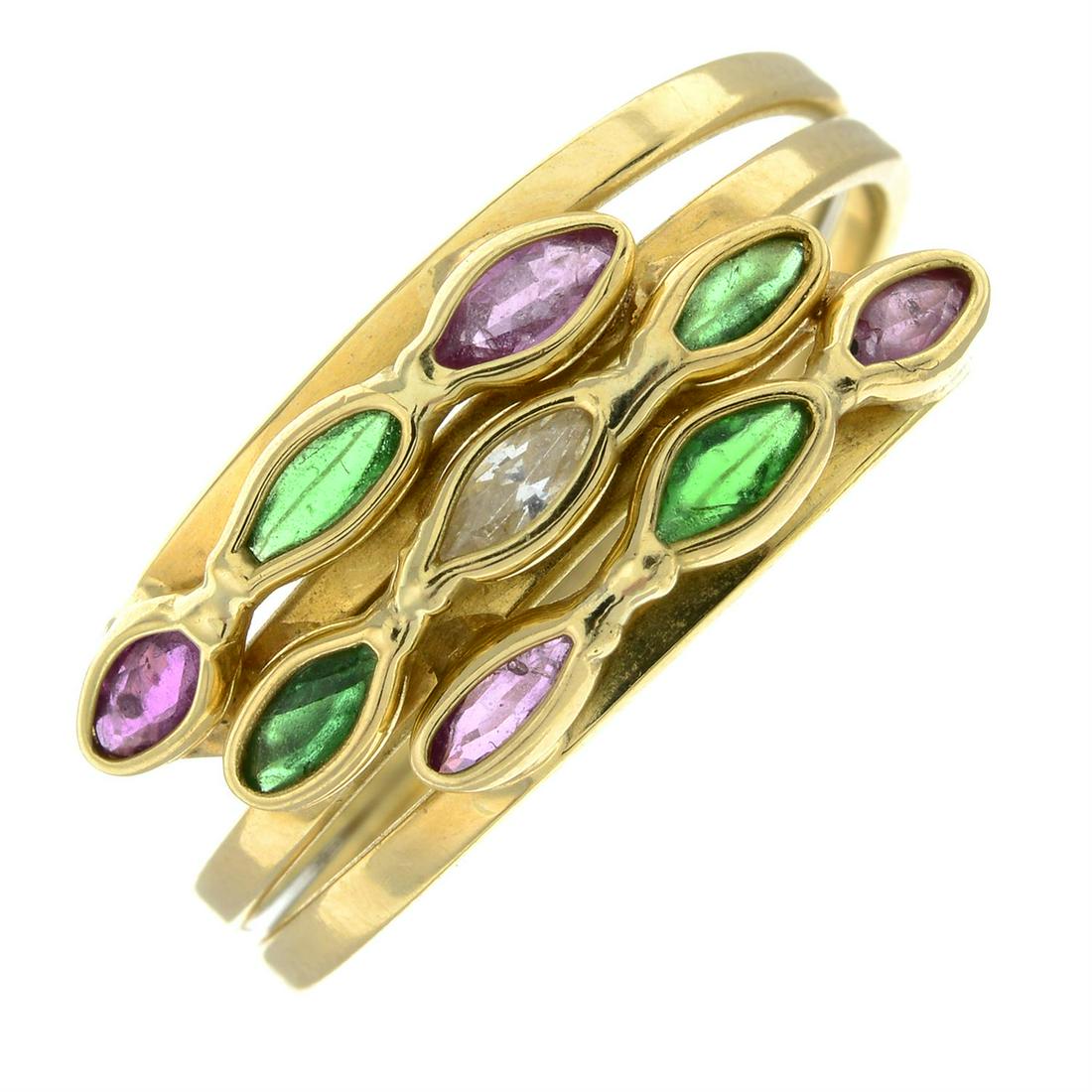 A vari-gem three-row ring.