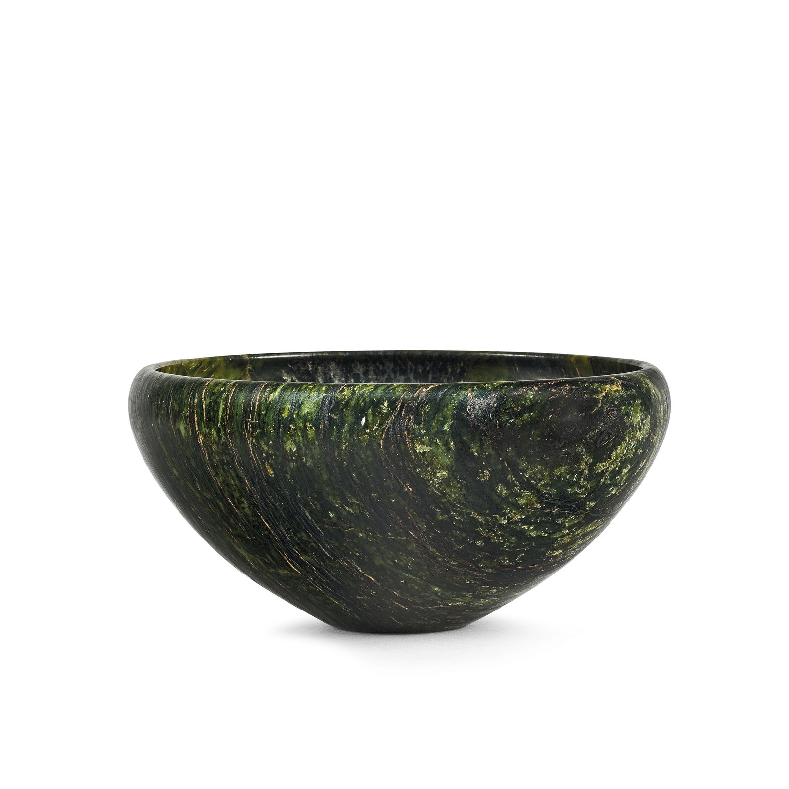 A variegated semi-translucent serpentinite bowl