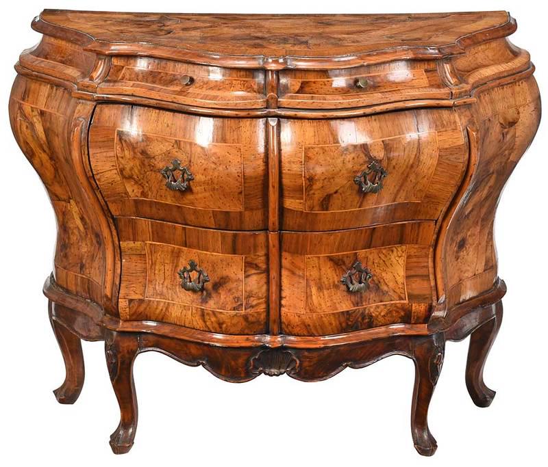 A Venetian Baroque Style Figured Walnut Commode