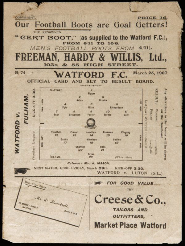 A very early Watford home programme versus Fulham