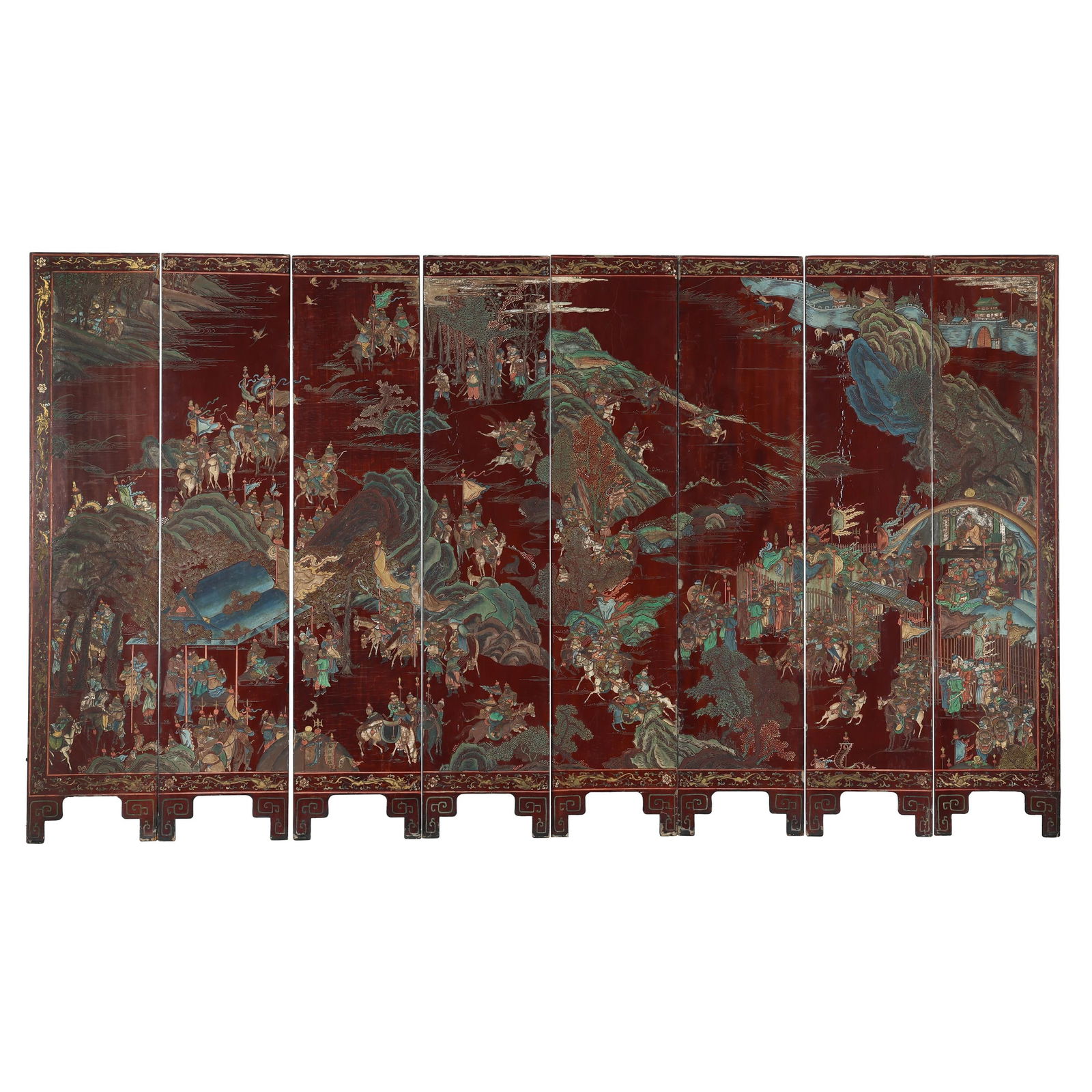 A Very Fine Chinese Eight Panel Painted Lacquer Screen