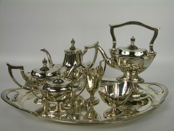 (6) ENGLISH MAPLE & CO. SILVERPLATE TEA & COFFEE SERVICE5 days LeftCollection of Antique & Vintage Silver Plated Tea & Coffee Ware TeapotsBOIN-TABURET, FABERGE - 8pc. FRENCH ANTIQUE 950 STERLING SILVER TEA SET + 6 FABERGE ESPRESSO CUPS !Seven Piece Silverplated Tea Service by F B RogersApr 06, 2026Wallace Grande Baroque Silverplate Tea Set 4pc with Tray1 day LeftGorham Plymouth 5-Piece Sterling Silver Tea Set2 days LeftGorham Plymouth Sterling Silver Tea and Coffee ServiceApr 02, 2026Gorham Silver Five-Piece Tea and Coffee Service and a Pair of Silver Sugar Nips2 days LeftSix Piece Tea Service, Solid Sterling Silver, Marked Dominick And Haff, Model #1072Apr 18, 2026Gorham "Plymouth" Sterling Silver Tea Set5 days LeftTowle “Grande” Silverplate Tea & Coffee Service with Tray – 4 Piece SetApr 03, 2026Mexican Sterling Silver Seven-Piece Coffee and Tea Service with Tray, Sanborns, 20th Century, Height4 days Left6pc Louvre Mexican Heavy Sterling Tea and Coffee ServiceApr 02, 20266 Pcs Gorham Sterling Silver Tea Set 3,133.4 gApr 14, 2026(5 Pc) Silver Plated Reed & Barton Tray & Pairpoint Coffee Tea Service1 day LeftP. L. KRIDER SILVER PLATE TEA SERVICE GROUPING2 days Left