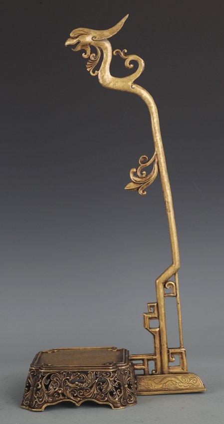 A VERY LARGE PHOENIX LIKE BRONZE BRUSH STAND