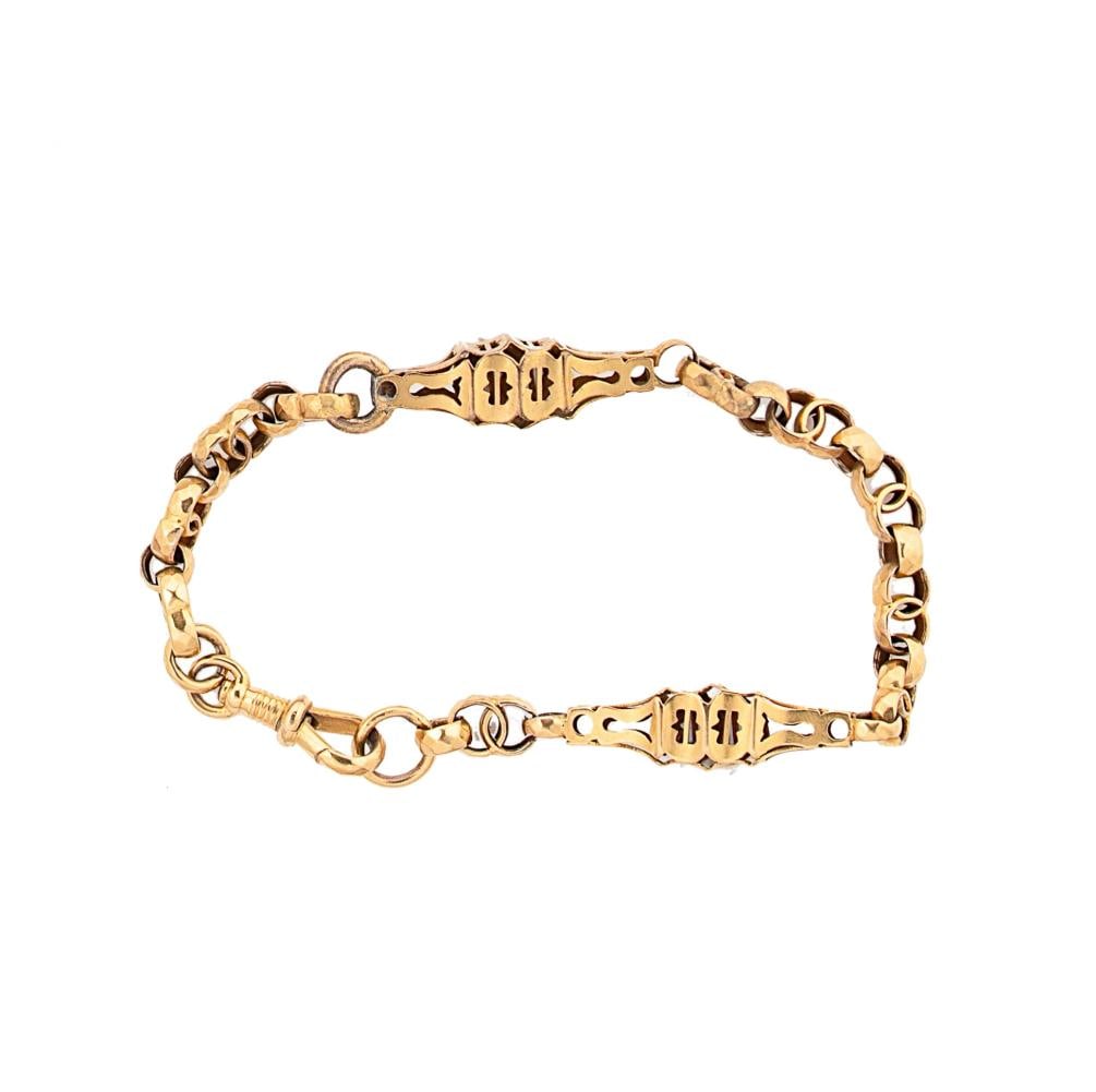 Sold10K Yellow Gold Victorian Bracelet with Slide10K Yellow Gold Victorian Bracelet with Slide length 8 inches, 34.6 grams Provenance: David R. Scarborough Estate Kennebunkport, MaineSee Sold Price