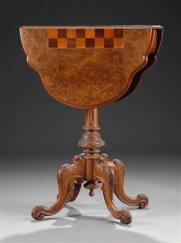 Victorian Walnut Parlor/Center Table2 days LeftAmerican Victorian Inlaid & Burl Walnut Round Table14 hrs LeftBaker, Neoclassical Style Inlaid Burl Wood Game TableFeb 19, 2026Regency Style Burl Walnut Round Pedestal Table with Brass Ormolu Mounts5 days LeftContinental Neoclassic walnut drum tableFeb 19, 2026A FRENCH ORMOLU-MOUNTED TULIPWOOD, FRUITWOOD, BURR BIRCH AND MARQUETRY TABLE A ECRIRE 19TH CENTURYFeb 18, 2026American Queen Anne Walnut Tea TableFeb 19, 2026Eastlake Style Walnut and Burl Side Table with Marble Top Circa 18902 days LeftVictorian Flame Mahogany Flip Top Table13 hrs LeftParlor Table, Walnut, Bird's Eye Maple And Ebony, Inlaid Musical Instruments DesignMar 21, 2026A FRENCH ORMOLU-MOUNTED TULIPWOOD, SYCAMORE AND MARQUETRY TABLE A ECRIRE THIRD QUARTER 18TH CENTURYFeb 18, 2026French Walnut Marquetry Oval Table with Marble Top and Brass Accents7 days LeftVictorian Revival Carved Walnut Marble Top Table C1880795 Lots AwayCarved Clawfoot Wooden Pedestal TableFeb 21, 2026Vintage Baker Furniture Faux Bamboo Burl Walnut Side Drink TableAntique Oval Walnut Victorian Marble Top Center TableFeb 16, 2026