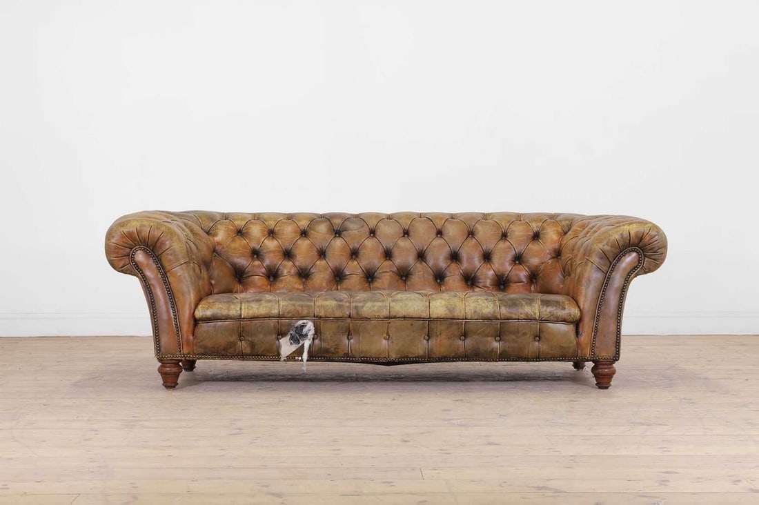 A Victorian buttoned leather chesterfield sofa,