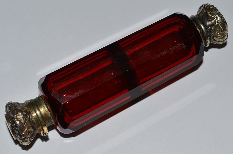 A VICTORIAN FACET CUT RUBY DOUBLE ENDED SCENT BOTTLE