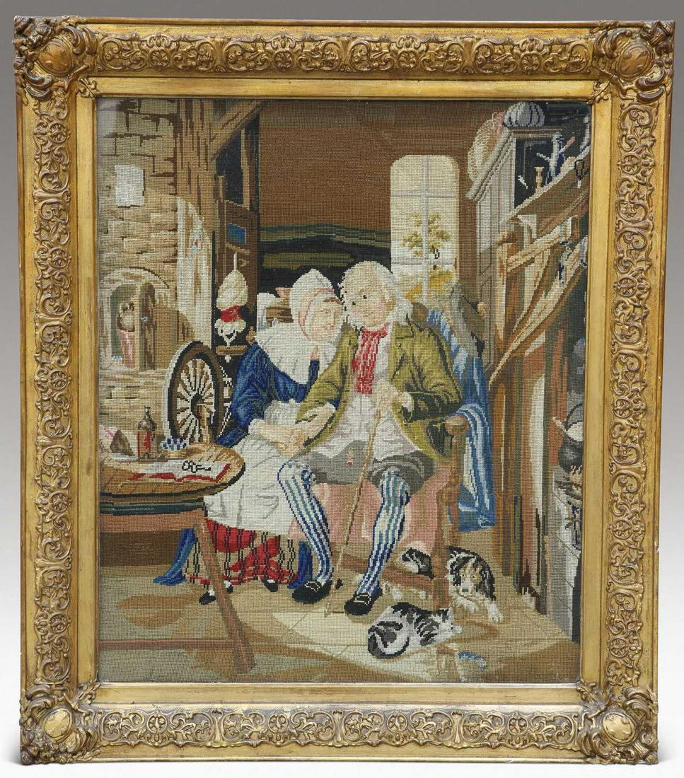 A VICTORIAN LARGE WOOLWORK PICTURE