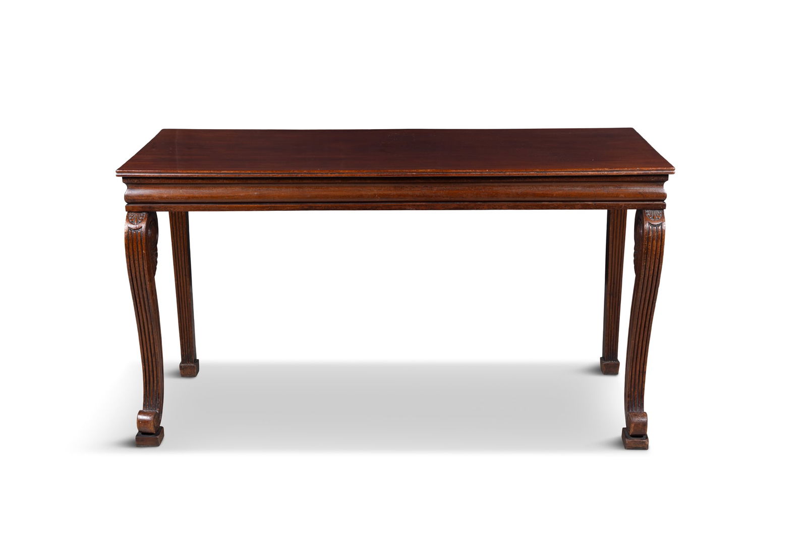 A VICTORIAN MAHOGANY COMPACT SERVING TABLE of rectangular form with solid panel top and pulvinated