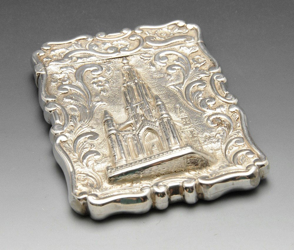 A Victorian silver castletop card case.