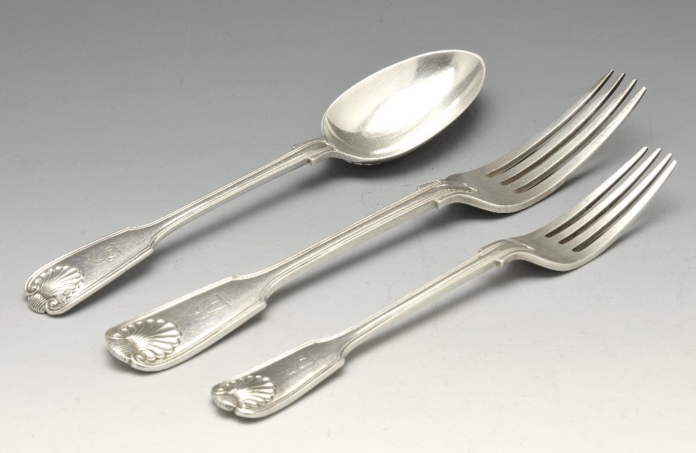 A Victorian silver Fiddle & Shell pattern forks, togeth