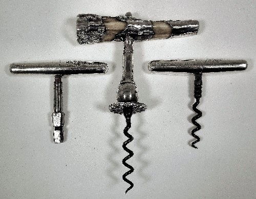 A Victorian silver folding corkscrew and matching c