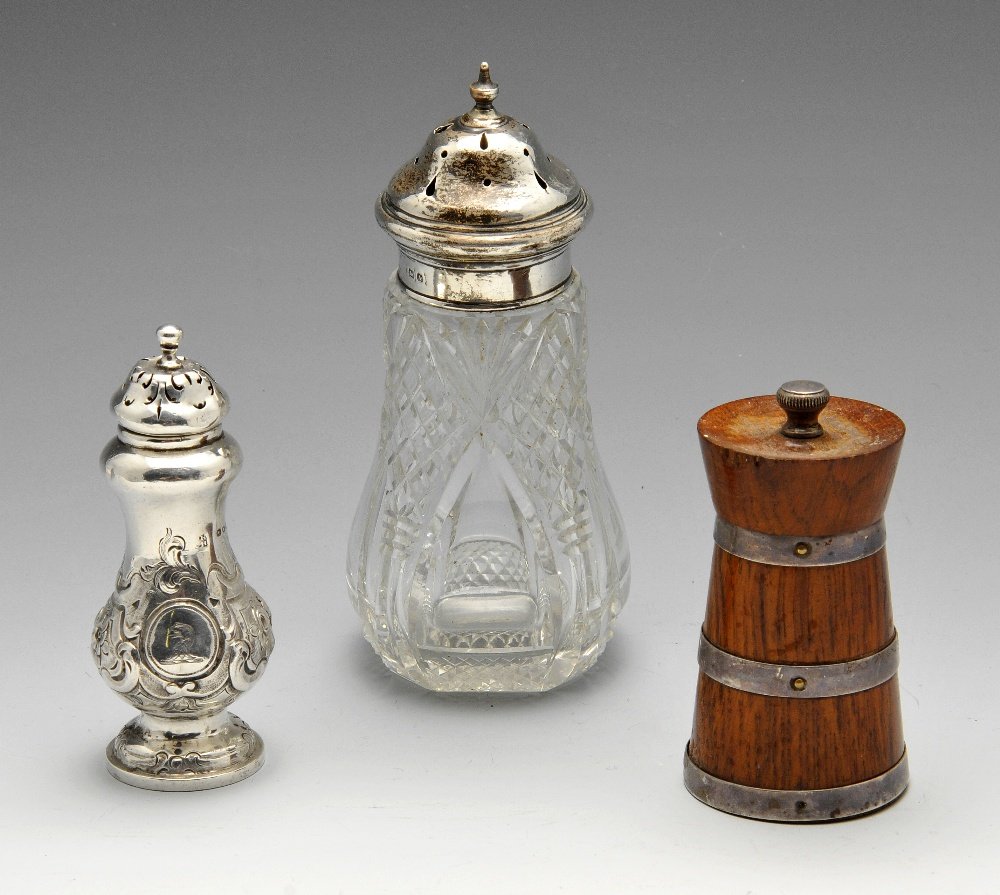 A Victorian silver pepper & a later silver mounted