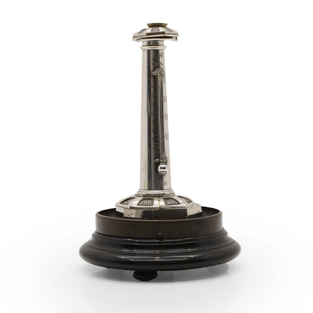 Sold(lot of 3) Georg Jensen Denmark silver-plated desk(lot of 3) Georg Jensen Denmark silver-plated desk accessories, including a clock, thermometer and barometer, 4.5"w. Provenance: Property from the estate of Thomas J. Perkins, San Francisco, and BelveSee Sold Price