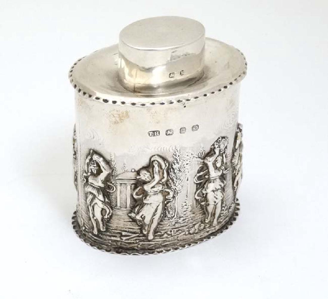 A Victorian silver tea caddy with cast classical maiden