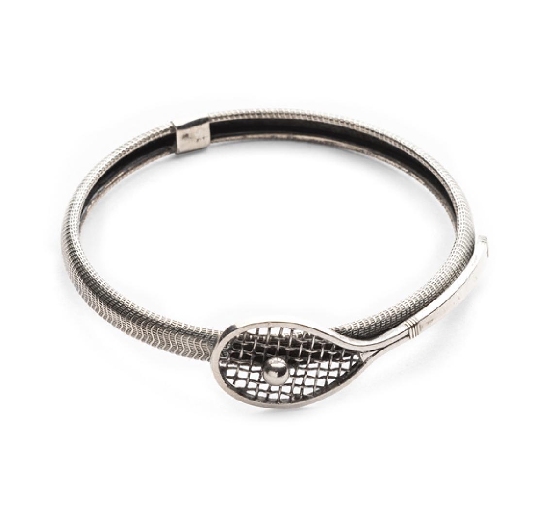 A Victorian silver Tennis Racket bangle, circa 1880,
