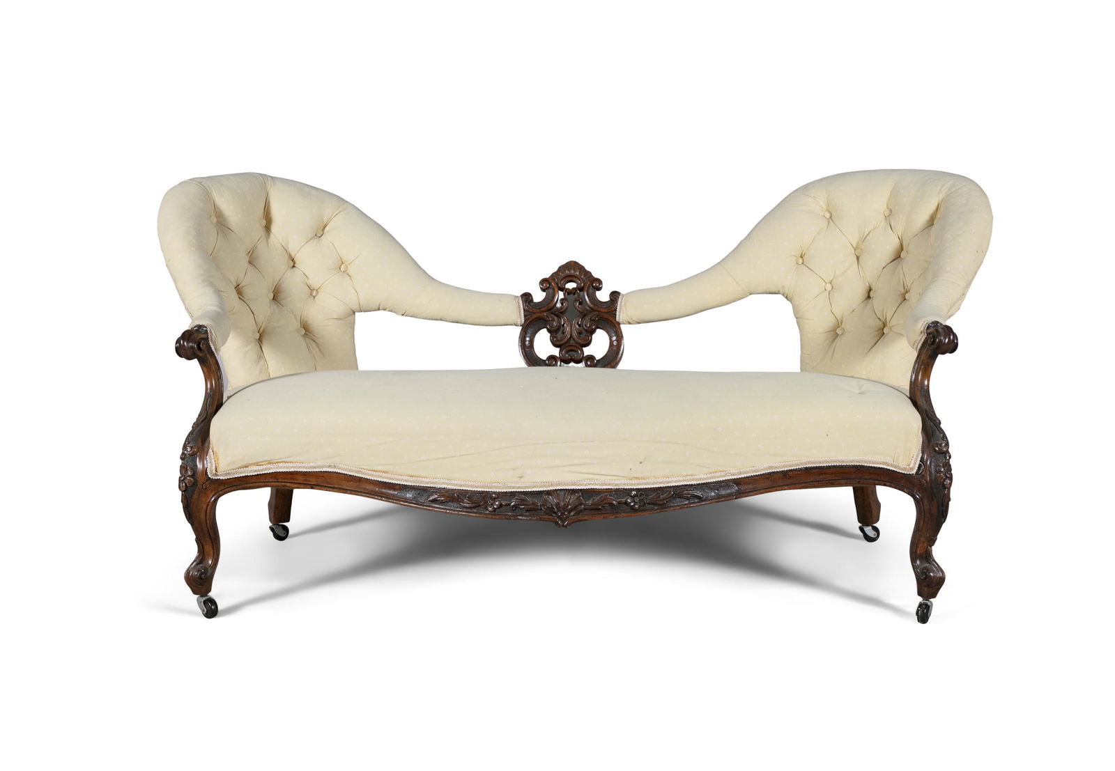 A VICTORIAN WALNUT BUTTON BACK SETTEE, covered in