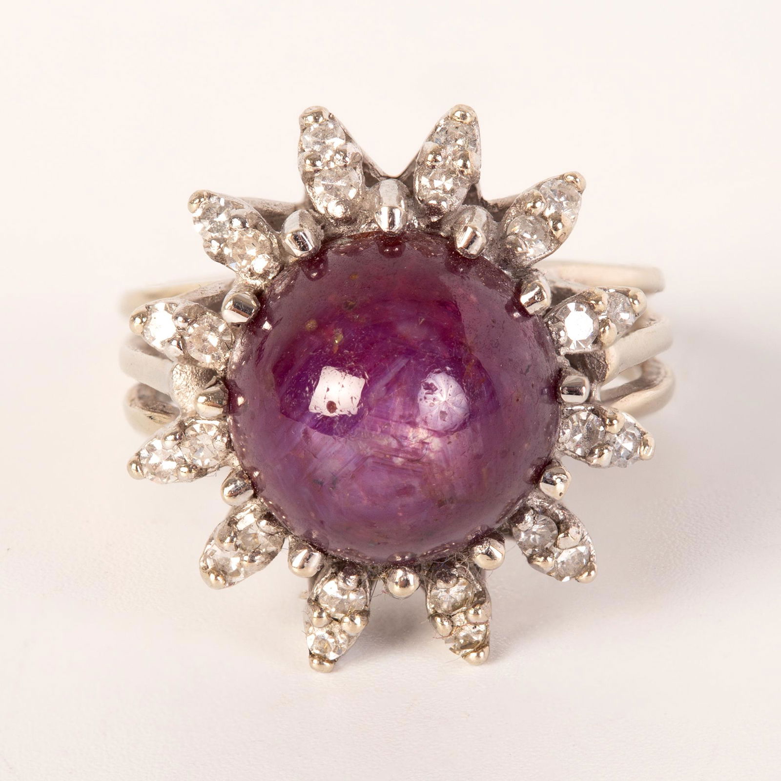 A Vintage 14K White Gold, Star Ruby and Diamond Ring