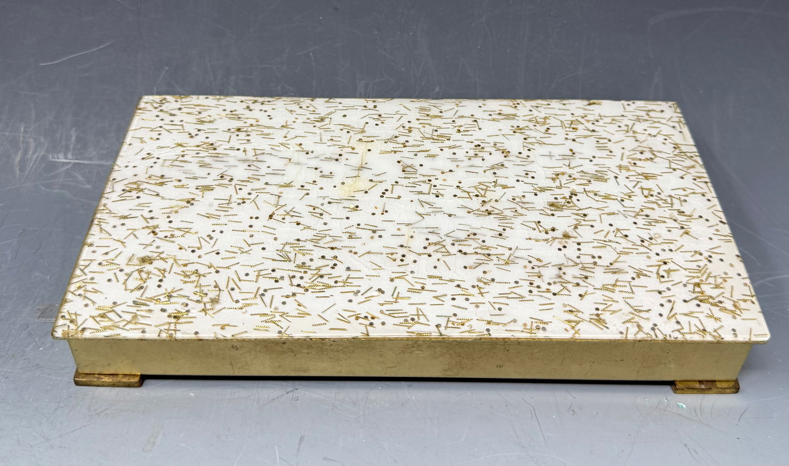 A vintage confetti Lucite cigarette case