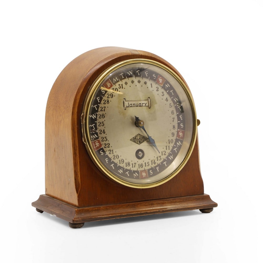 A walnut cased 'Day Dial' calendar